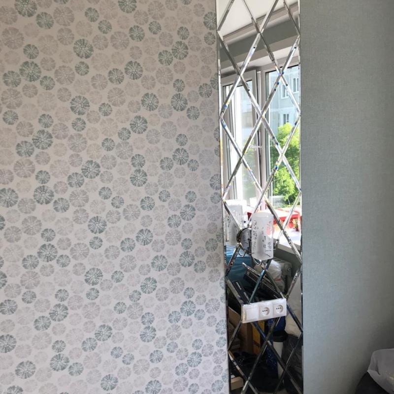 Использована серебряная квадратная зеркальная плитка 18х18.