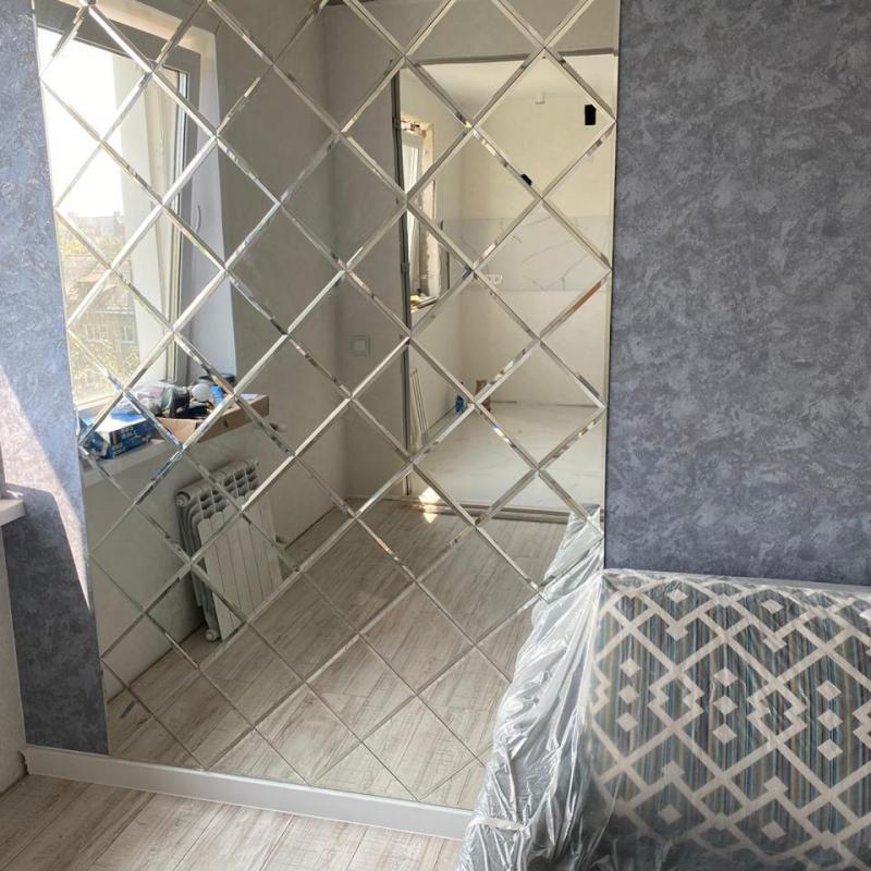 Использована серебристая квадратная зеркальная плитка 18х18.